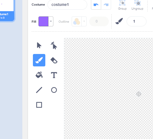 Choose a color from the purple box on the top left of the sprite editor, then start drawing your character.