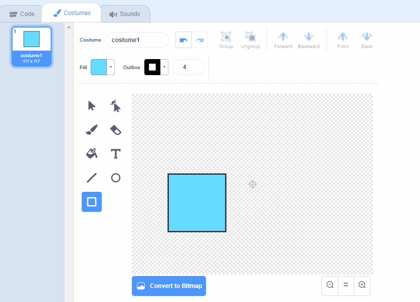 Find the blue cat face on the bottom right hand part of the screen, and carefully put your mouse over it. When a menu pops up, move your mouse up to the paintbrush tool.
