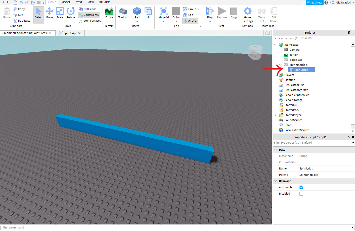 1. Add a Script to Your SpinningBlock