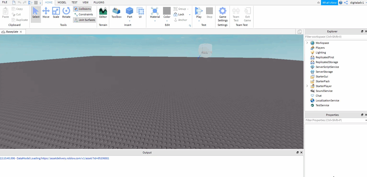 1. Open Roblox studio and load the starter kit