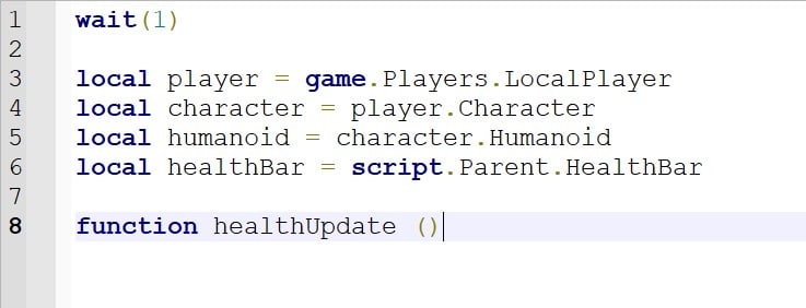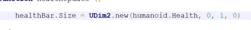 Now it’s time to specify exactly what the new size of our health bar will be. The UDim2 has a lot of parameters so it can build the specific size you want.