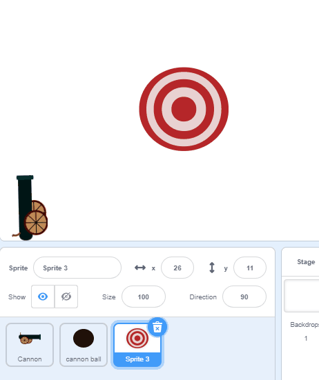 Let's call our Sprite "Target", and Size it appropriately. Remember both of these changes can be made in the sprite menu!