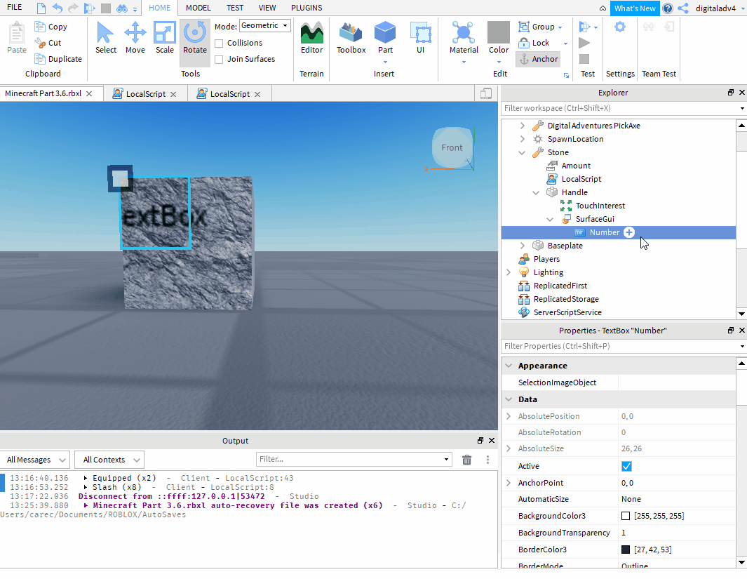 5. Create a Surface GUI and an IntValue to Your Block Tool