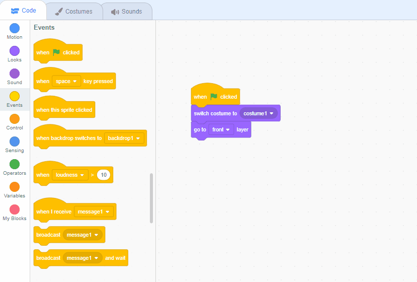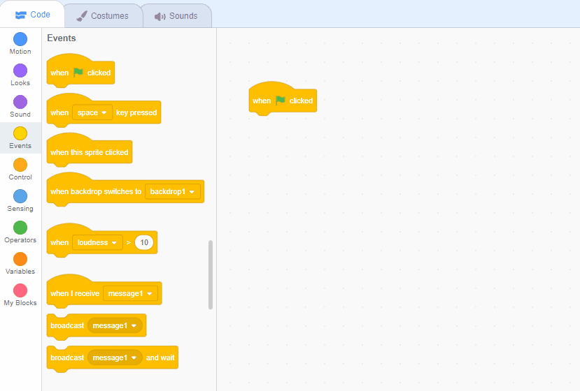 This is a yellow block! It's the 3rd yellow block. This one will not connect to our old code - we're making a new chunk of code! Put this yellow block wherever you want.