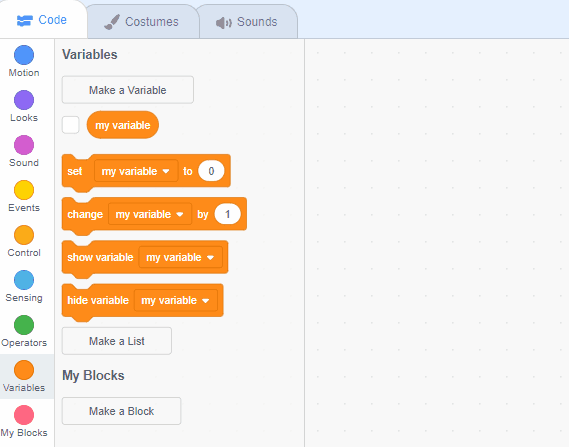 Inside of the forever loop, but outside of the if-then-else statement, put down a dark blue block "change y by ___." Now we want to change Y by a variable, so go to your orange variable blocks. Grab the bubble that has your variable name in it, and put it inside the blue block's blank space.