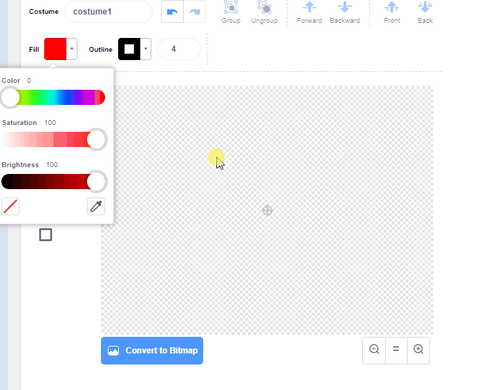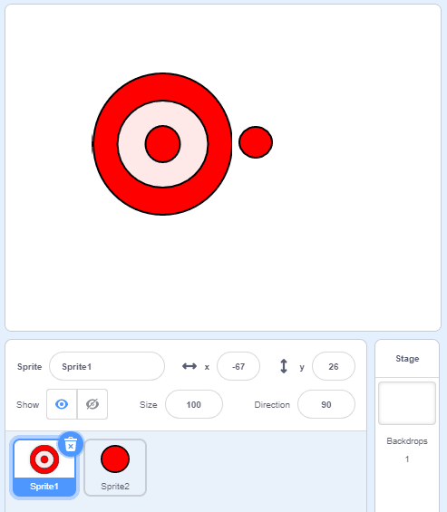 Hover over the sprite creation tool and select the paintbrush. Then draw the target using different colored circles that are all lined up with the center.