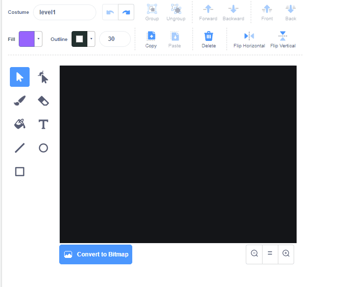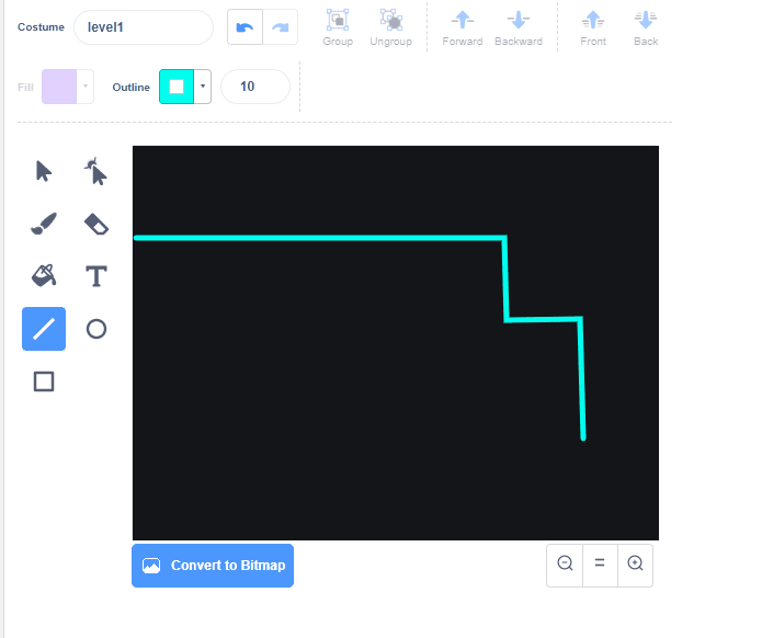 Using the backdrops editor in Scratch, design a simple maze. Use one color for the walls, and another color to represent the end goal.