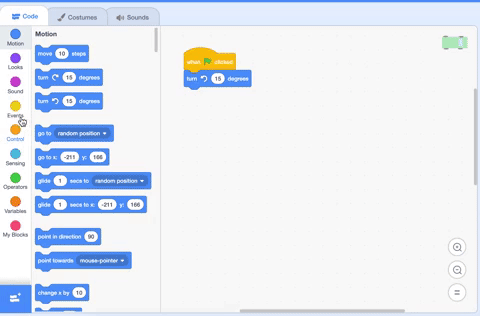 If we want our code to make decisions, we need to use an if-statement. You can find the "if __ then"-statement in the orange "control" section.
