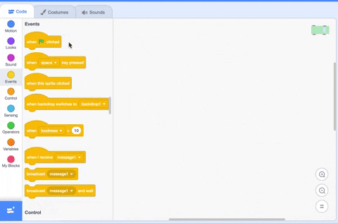 If we want our code to make decisions, we need to use an if-statement. You can find the "if __ then"-statement in the orange "control" section.
