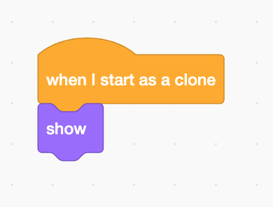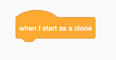 Add a "when I start as clone" block from the yellow "Events" section. This event will let you add code to only the newly created clones, and not to the original sprite.