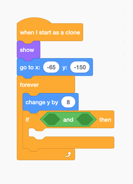 Inside the forever loop created in step 3, add an "if __ then" block.
