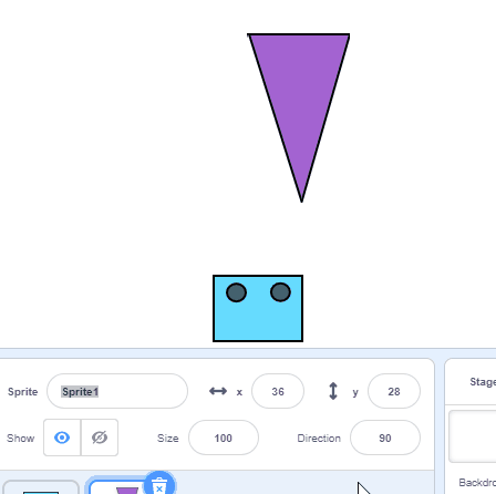 Use the paint tool to create a colored triangle (different from your hero). Be sure to size your enemy so that you can rain down on your hero. Give your enemy Sprite a name you can remember.