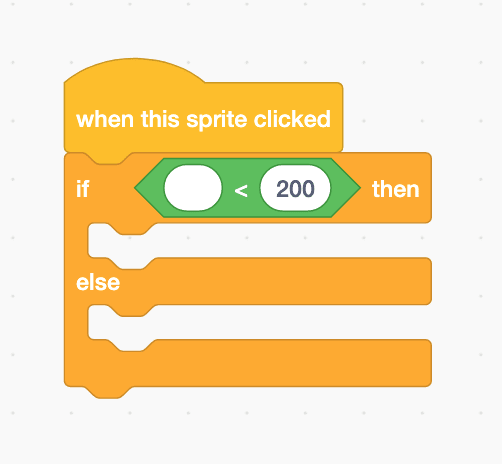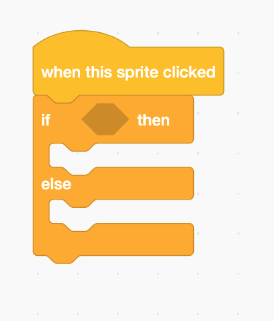 We want to be able to give our sprite different code for each outcome, so we are going to add an "if ___ then ___ else ___" block from the "Control" tab.