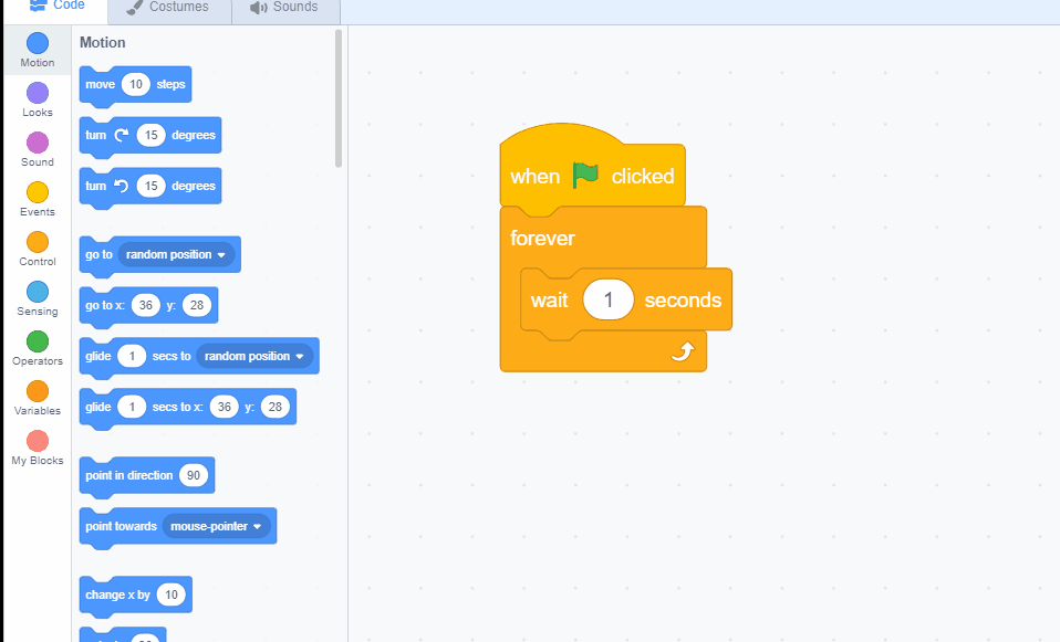 Now that we have clones spawning after a set amount of time, lets tell them what path what path we want to put them on. Grab a "set ____ to 0" block from the variables tab and place it above the "create clone of myself tab" , Set the variable to "path" and lastly change the value from 0 to 1.