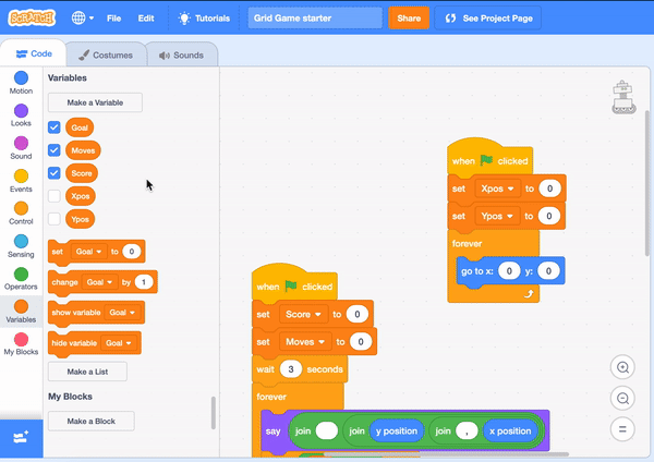 We are going to combine the X and Y axis we just talked about to make our grid game. In this project we are going to be using variables to track Nano's X and Y position, so we have to set those numbers at the beginning of the game, and also tell Nano to use them to control its movement.