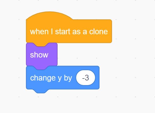 Attach a "motion" block called "change Y by __" and change Y by -3.