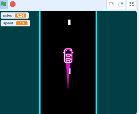 The game should keep track of how good the player is doing based off how many miles they drove before getting knocked off the screen. The miles should be based off the speed variable.