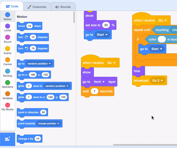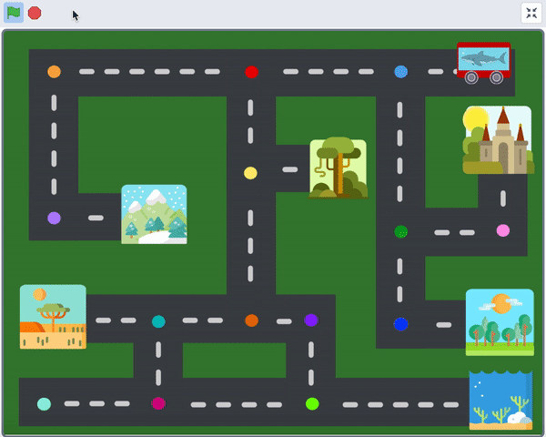 Test out your finished instructions! When the car touches the Underwater habitat it sends a signal to the next car that it is finished so it can start driving the next animal home.