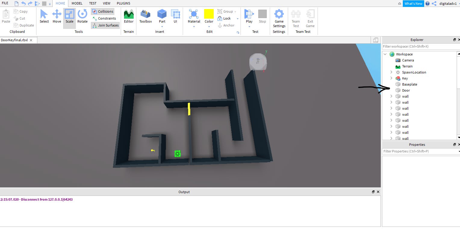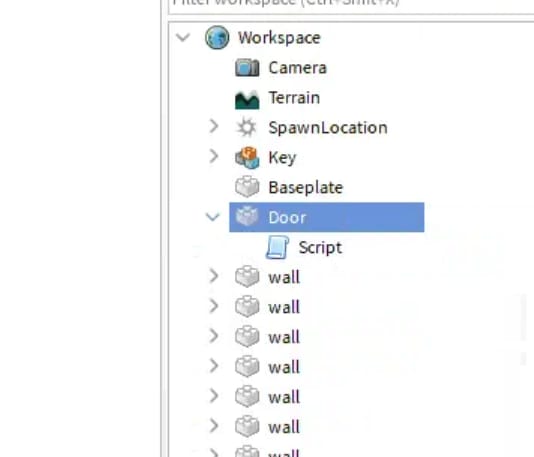 Click on the triangle next to "Workspace" to twirl it open. "Workspace" is like the world of the game, and it will hold all your objects.
