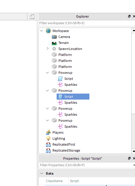 Click on another powerup in the window, and right click on it - select "Paste Into."