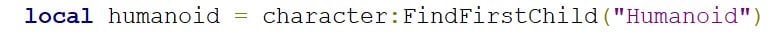 So, tell your "character" to run a function called "FindFirstChild" with the parameter "Humanoid"