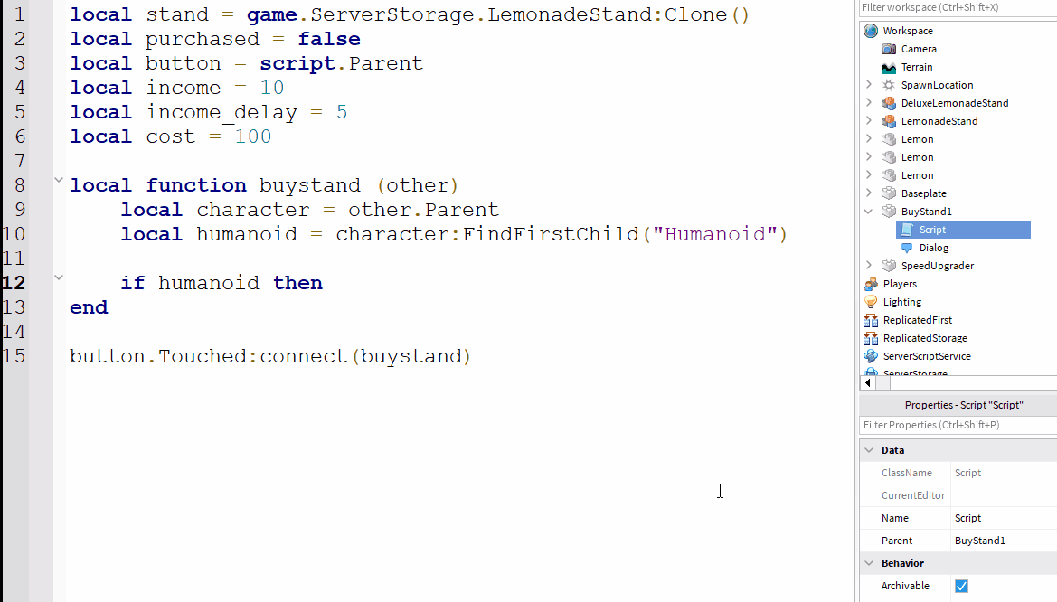 We'll keep track of whatever thing hit your lemon with a local variable. We'll call the variable "character" and then set it equal to "other." (Remember, "other" is whatever "other" object ran into your button.)