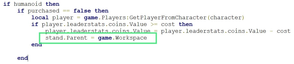 Remember, parents hold things, so if the Workspace is the parent of the stand, then the stand will be held inside the Workspace with all your other game objects.