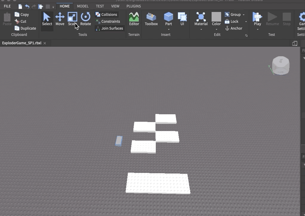 Place down another part. Use the scale tool to make this part long and thin, like a hallway wall.